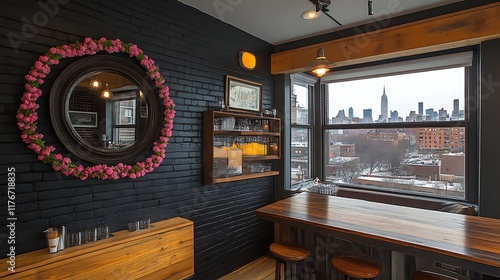 Urban View Cocktail Bar Interior Design With Floral Mirror