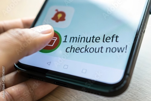 Urgent checkout reminder on smartphone screen indicating limited time to complete purchase. Generative AI