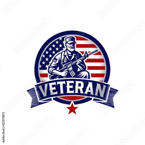 US Veteran badge with flag background vector logo