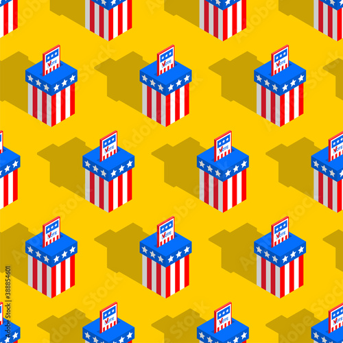 USA election day pattern seamless. Vote in ballot box background. Isometric vector ornament