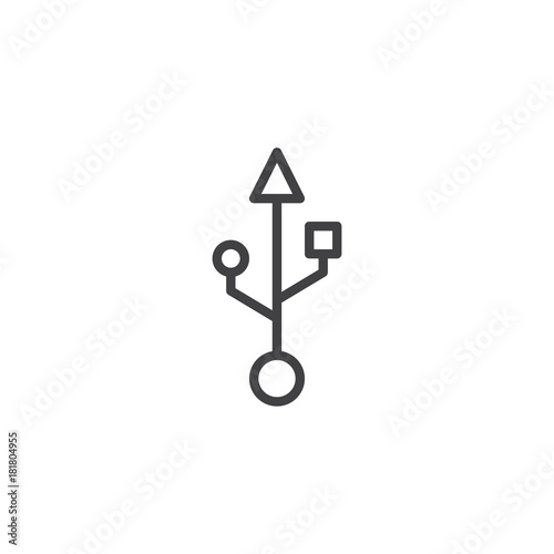 USB connection line icon, outline vector sign, linear style pictogram isolated on white. Port usb symbol, logo illustration. Editable stroke