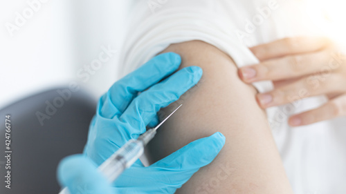 Vaccination, Doctor is vaccinating the patient with antibiotics or virus-resistant antibiotics to prevent the spread of the virus, Antibiotics prevent new strain of flu concept.