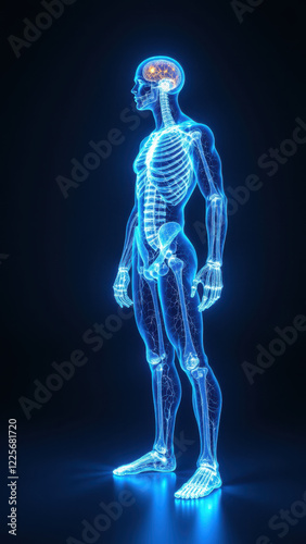 Vagus Nerve Stimulation, VNS - Man's skeleton with illuminated nerve pathways, representing the human body response to this medical treatment.