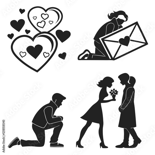 Valentine Elements Icon Set Silhouette Vector Illustration