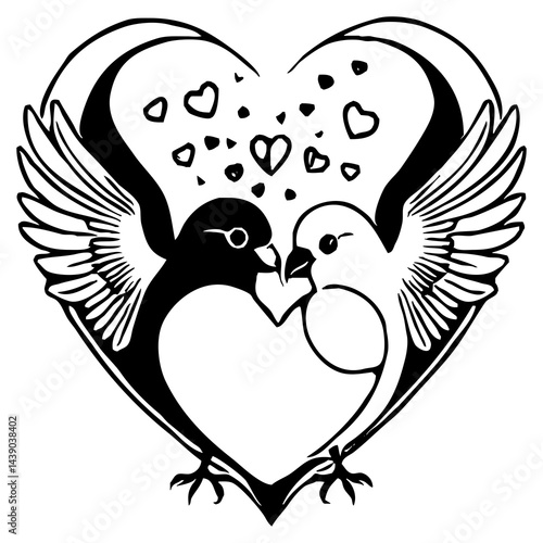 Valentine's Day card design. Black and white illustration . Pattern for printing on wall decorations, covers