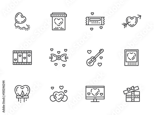 Valentines Day flat line vector icons set