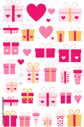 Valentine's Day Gift Boxes and Hearts - Cute Seamless Pattern - Perfect for Romantic Backgrounds - Celebratory Design Featuring Pink and Gold Boxes with Hearts