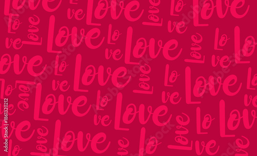 Valentine’s Day Seamless Pattern with Handwritten Love Typography on Red Background