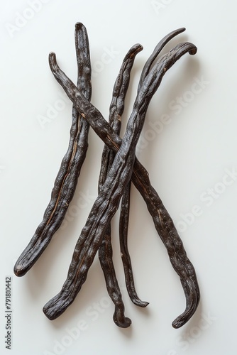 Vanilla bean, pure white backdrop, high-resolution image, slight shadow,