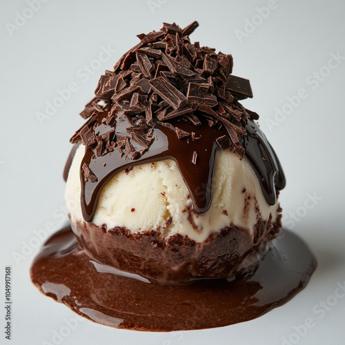 Vanilla Ice Cream Covered in Chocolate Sauce and Shavings