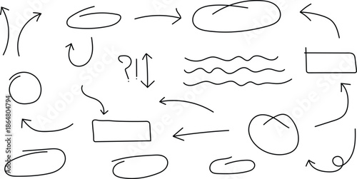 Variety of hand drawn sketch elements for flowcharts, diagrams, and idea visualization Vector