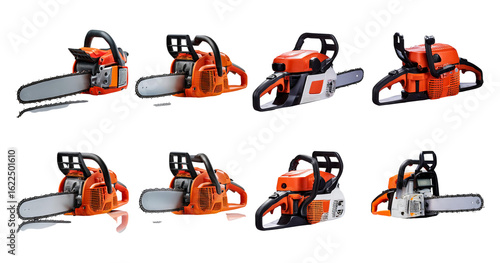 Various Chainsaws on Display for Garden and Forestry Work, isolated on transparent background
