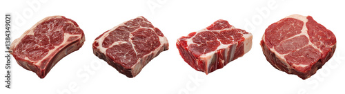 Various Cuts of Raw Beef Displayed on a White Background, PNG bundle collection, Isolated on Transparent Background