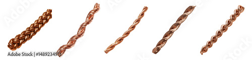 Various Twisted Copper Wires in Different Styles and Textures, Isolated on Transparent, white background