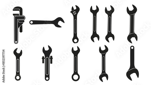 Various Wrench and Spanner Tools Black Silhouette Vector Icons EPS10 Stock.eps
