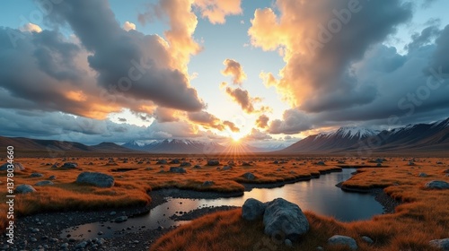 Vast Hardangervidda National Park in Norway, captured at dawn under cloudy conditions, from a panoramic viewpoint.