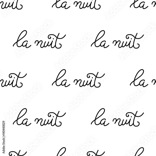 Vecktor pattern consisting of lettering, hand-written and circled phrases La nuit.