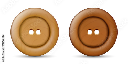 Vector 3d Realistic Wooden Button for Clothes Icon with Shadow Set Closeup Isolated. Fashion, Art, Needlework, Sewing, Scrapbooking Decor. Round Clothes Button Design Template, Top View