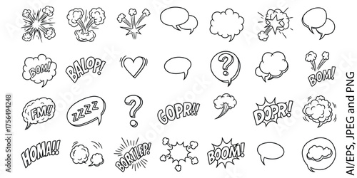 Vector art of collection of handdrawn speech bubbles and comic book sound effects vector