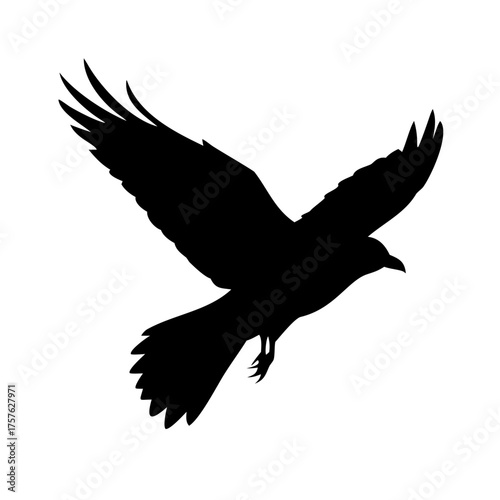 Vector art of silhouette of a crow in flight the black silhouette of the crow against the white backdrop creates a striking image, capturing the essence of the birds movement