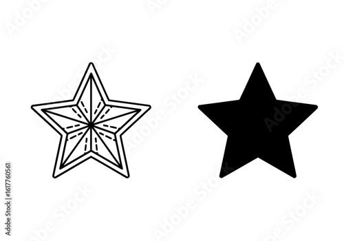 Vector art of two stars, one outlined and one solid black, isolated on white background