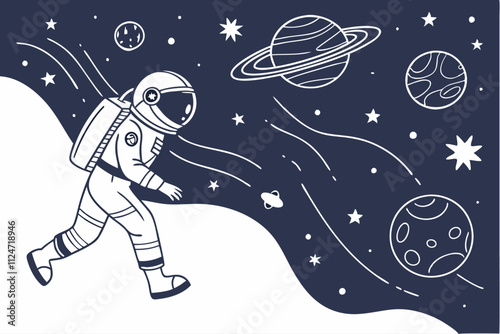 Vector Astronaut space theme isolated background.