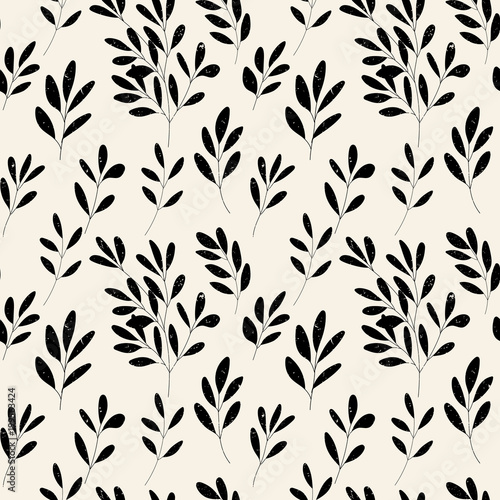 Vector botanical seamless pattern with textured hand drawn twigs.