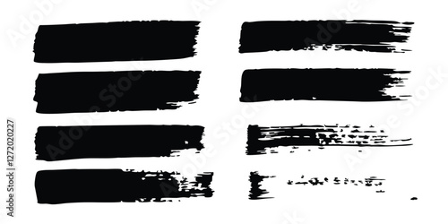 Vector brush strokes featuring black hand-drawn stripes, smears, Chinese or Japanese calligraphy, rough grunge texture, and rough grunge paint line texture, with vector sketch rectangle text boxes.