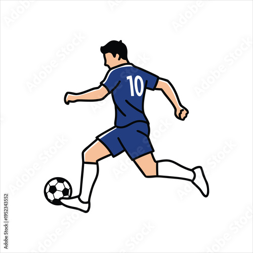 Vector Cartoon Football Player Kicking – Action Soccer Kick Blue Jersey Illustration
