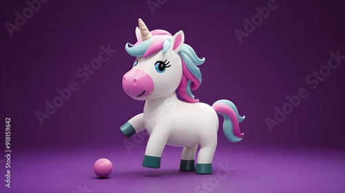 Vector cartoon icon in 3D render of a unicorn