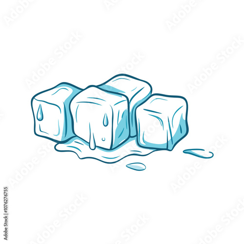 Vector Cartoon Illustration Ice Cubes Melting