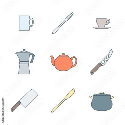 vector colored outline dinnerware tableware utensil icons