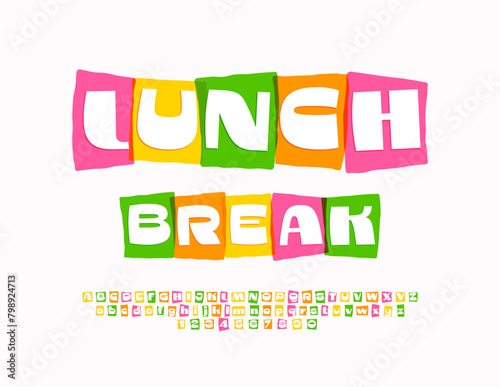 Vector colorful banner Lunch Break. Unique Bright Font. Modern Creative Alphabet Letters and Number set.