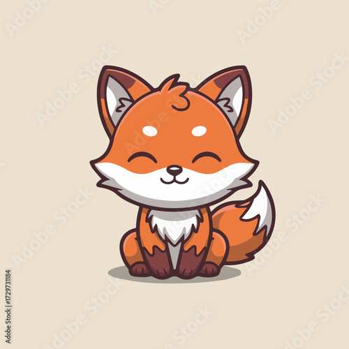 vector concept for cute cartoon fox with orange and white fur, sitting and smiling, adorable animal illustration for kids and children
