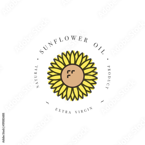 Vector design element and icon in linear style - sunflower oil - healthy vegan food