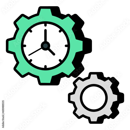 Vector design of time management, clock inside gear