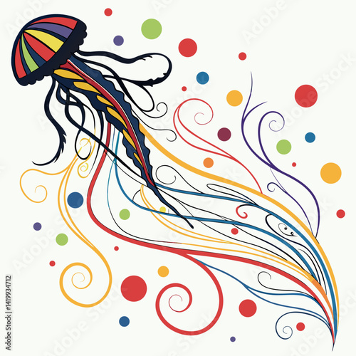 Vector design with colorful floral swirls and wave patterns