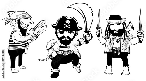 Vector doodle pirates characters with weapon