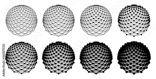 Vector dotted striped spheres set.
