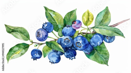 Vector drawing illustration of blueberry plant with leaf