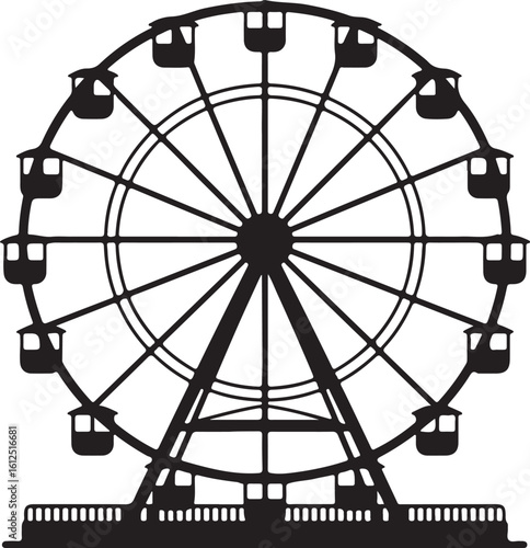 Vector Ferris Wheel Icon: Black Silhouette Sign, Amusement Park Symbol, Graphic Design Element