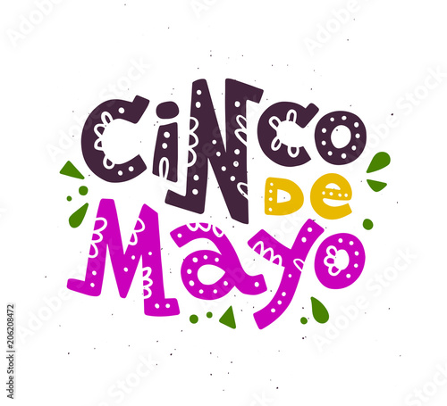Vector flat hand drawn illustration with flat Cinco de mayo lettering isolated on white background. Mexican poster, placard, banner, print element design.