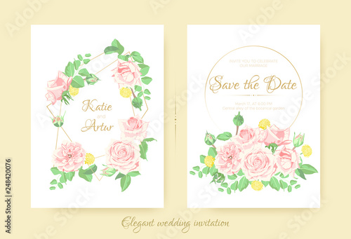 Vector Flowers Bouquet, Vintage Wedding Cards.