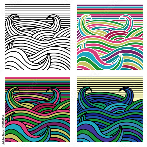 Vector hand drawn decorative abstract wave ornamental.Set of four illustrations