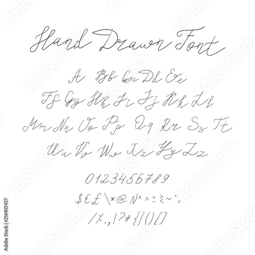 Vector Hand Drawn Font, Calligraphic Handwritten Typeset, Black Sketched Lines, Letters and Symbols.