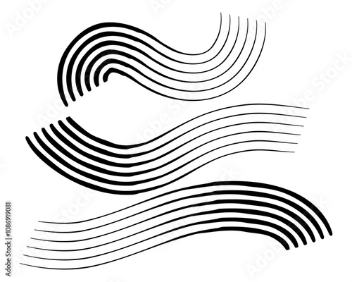 Vector hand drawn wavy lines set on transparent background