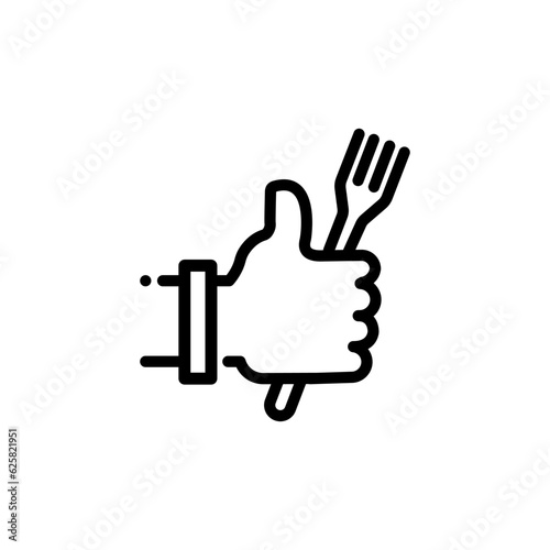Vector hand like icon template. Thumbs up sign background. Good food logo illustration with fork sign. Line symbol for farmers market, cafe, restaurant, catering, cooking business