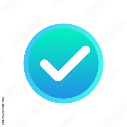 Vector icon of a checkmark inside a circular button, used in digital interfaces for task completion, confirmation, approval, verification, or status symbol in apps and systems