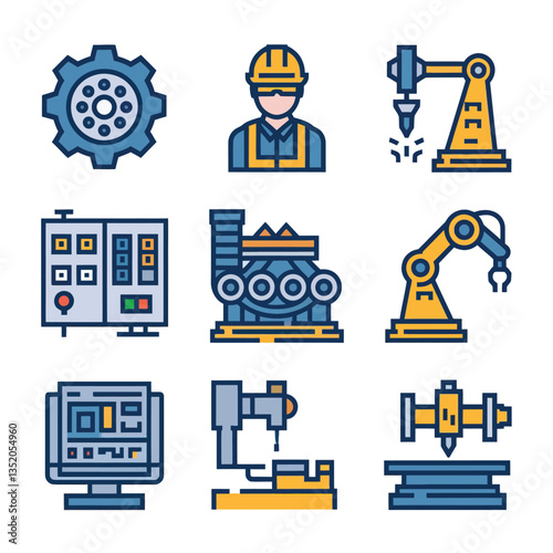 vector icons for robots, artificial intelligence, and the assistance provide in work and security