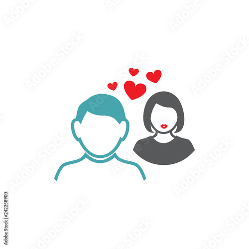 Vector illustration between the guy and the girl four hearts. Set of vector symbols. Great mutual love. Happy family life after the wedding. Flat design Monochrome